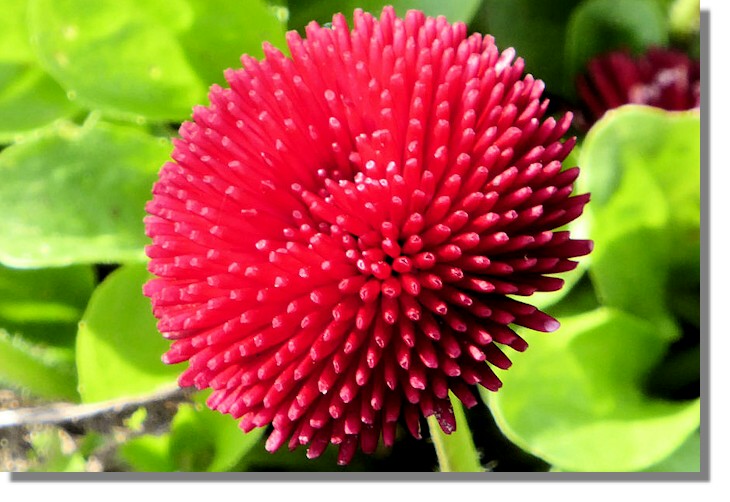 This is one of the many forms of Bellis which is in the sunflower family, as is the common daisy, Bellis perennis