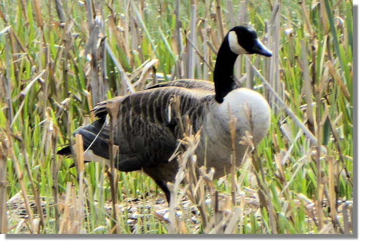 While Canada Geese have been established for a long time in the UK, they are usually migratory birds but a pair of them appear to have built a nest on a small island on a loch at Drumpellier. Surprisingly they are near a nesting site used each year by a pair of swans. Male swans can be aggressive but there didn't seem to be any attempt to drive them off.