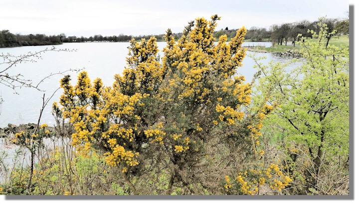 Thorny Gorse (also known as Whin or Furze or by its "proper" name Ulex) is closely related to Broom. The plants can spread across hillsides as their seeds become widespread and many hills in Scotland can be covered in their yellow flowers. It can flower a bit in winter but mainly bursts into bloom in the spring. It thrives in poor soil and can survive moorland fires with its seeds being opened by the flames.
