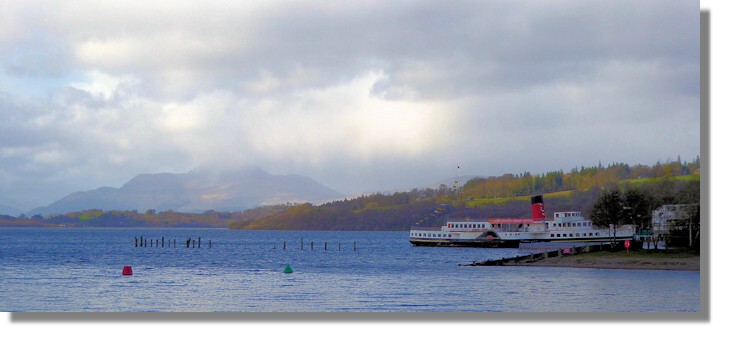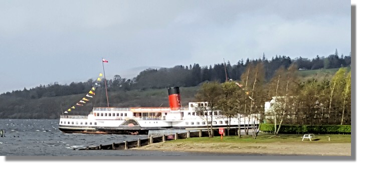 See what I mean about the weather being "changeable"? Despite a chilly breeze we went for a walk to get closer to the Maid of the Loch paddle steamer - and the sun came out! The Maid of the Loch used to run boat trips up the loch - I can still recall such a trip from over 60 years ago and the thrill of going below decks and seeing the engines and the paddles noisily working to propel the ship past the various small villages along the banks of the loch. A group of enthusiasts have been working for over 20 years to restore the vessel (which was originally built on the river Clyde) to its former glory and once again take passengers for trips on the loch. See Maid of the Loch Web site.