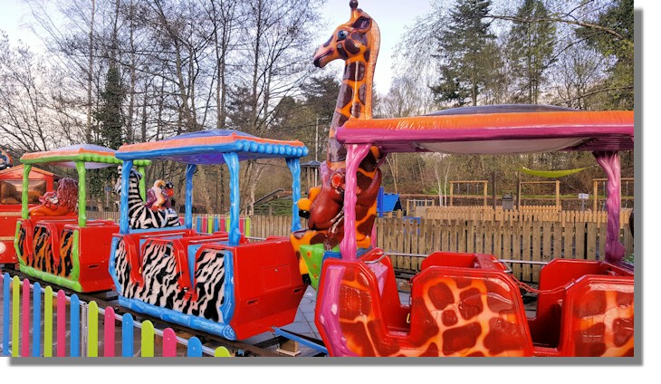 Loch Lomond Shores tries to provide a range of facilities to attract tourists to Balloch. In addition to the shops in the retail section (with a branch of Jenners the Edinburgh department store), the large aquarium in the Drumkinnon Tower and the Bird of Prey Centre with over 40 birds and a "TreeZone" Aerial Adventure Course, younger children are well catered for with an obstacle course and rides like the one here.