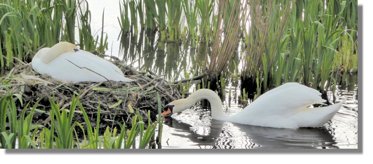 The male swan can be very aggressive especially at this time of year. He gets into "attack mode" and drives away any other swans - including his own offspring from the previous year. His focus is very much on the next generation!