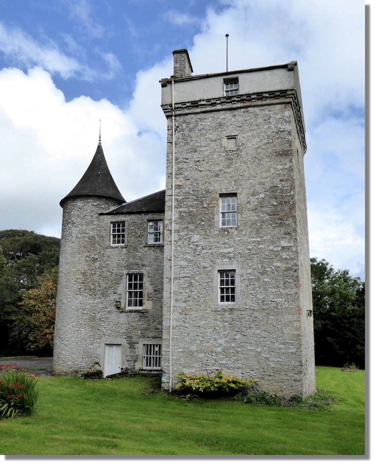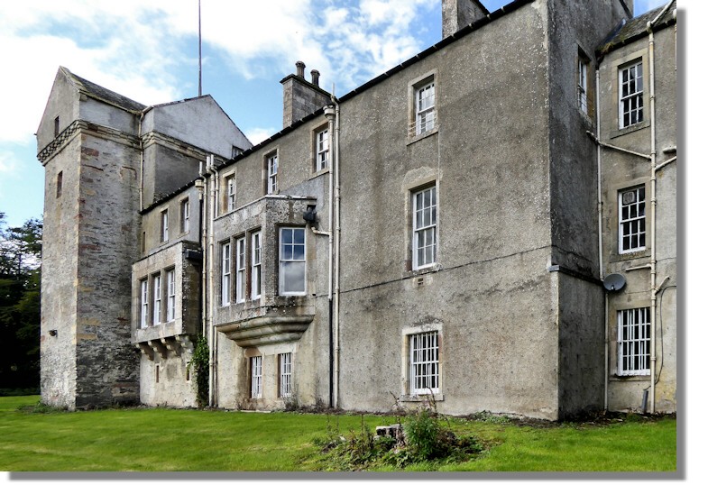 This view of Branxholme shows some of the extensions to the accommodation that have been made over the centuries with the 16th century tower house (with few windows as it was still a defensible castle and the later mansion house extensions. The building is currently unoccupied .