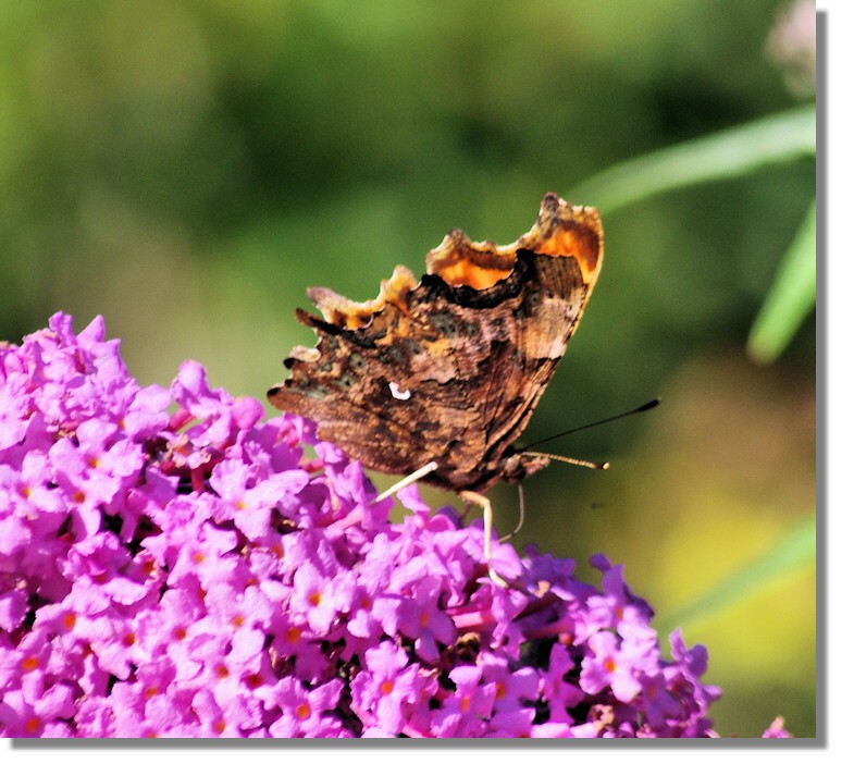... and were not disappointed! Over 10 Peacocks, 5 red Admirals, 1 small Tortoiseshell, 1 small white, 1 large white and - best of all, 5 of our favourite butterflies, the Comma!