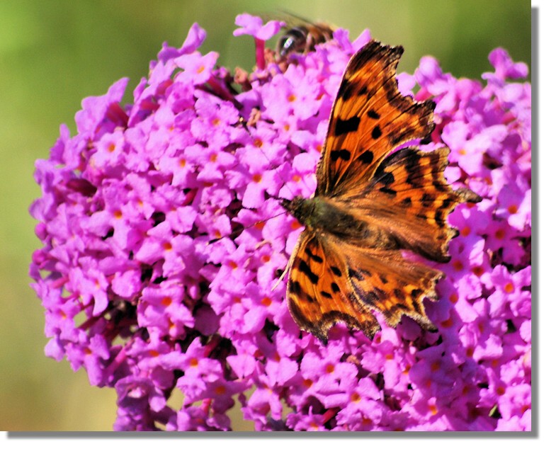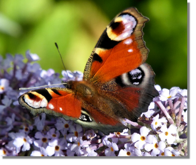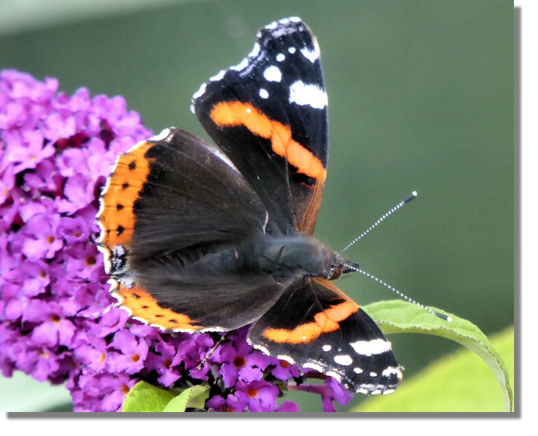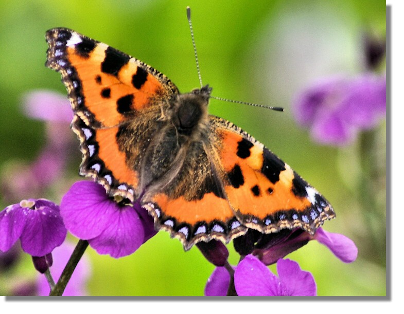 This Small Tortoiseshell also came into our garden to enjoy the banquet that had been laid out for them in the form of Buddleja, Wallflower and Sedum "Autumn Joy". The butterflies must have noted our address as the place to come for a good lunch as the Red Admiral was still turning up in early October!