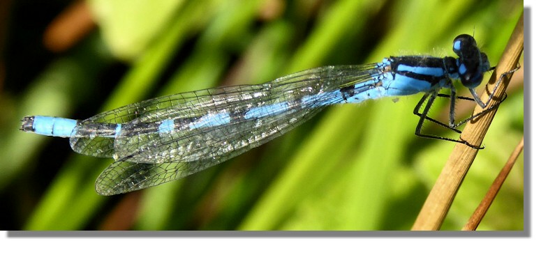 One sunny, warm afternoon there were lots of damselflies down at the water's edge taking advantage of the warm weather to do what damselflies do - males courting the females so that another generation of damselflies will be around next year! These are the "Common Blue" variety.