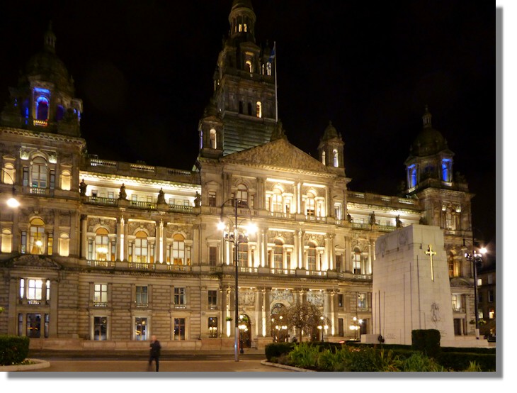 Glasgow City Chambers has nothing on display that is special for the Festive Season - it is always lit up like this at night in the dark winter months.