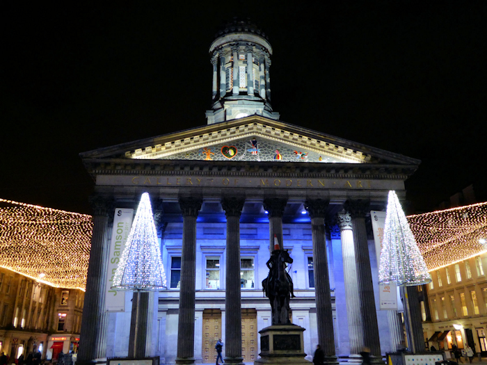 The Princes Square development is on the other side of the street from Frasers. It may not look like a "square" but the cobbled square of original 1840's building was covered over with a glass ceiling and redeveloped in 1986 into a 112,000 square feet up-market retail space. The original sandstone facades have been preserved around the modern interior, adorned with decorative glass, tiling, lighting, timber and metalwork and a glass sided lift. The writer Bill Bryson referred to Princes Square as "one of the most intelligent pieces of urban renewal." Their Christmas lights are great too!
