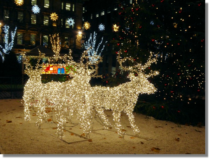 Santa's sledge and reindeer created from lights beside the Christmas tree is always popular with parents taking pictures of their wide-eyed children beside the display.