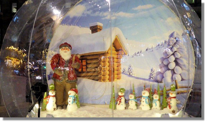 Santa's snow bubble gives young kids the "experience of snow" and enjoying themselves while their antics are automatically recorded on video by the operator. The children who were in the bubble when I arrived were throwing the "snow" around with gusto and became covered in it from head to toe. But before leaving a hair dryer was used to blow it all off - otherwise the snow would have soon disappeared down the street!