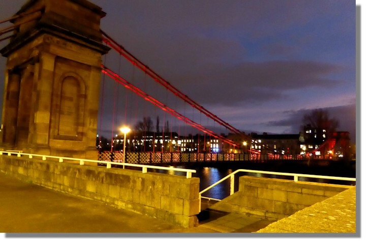 Although in winter a number of the bridges across the river Clyde are normally lit up they do add to the festive atmosphere in December. This is the pedestrian bridge between Clyde Street goes over to Carlton Place on the south bank of the river. It was built between 1851 and 1853.