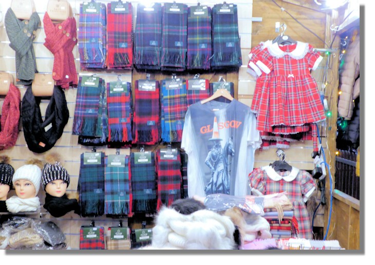 The thought "coals to Newcastle" passed through my mind when I saw these tartan scarves and dresses. Note that the Glasgow T-shirt has an illustration of that Duke of Wellington with a traffic cone on his head. I admit I nearly bought one!