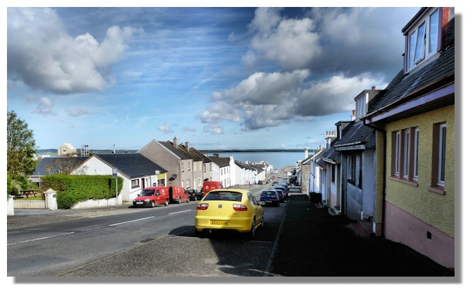 This is the main street in Bowmore - surprisingly wide for such a small place. Bowmore is the largest village on Islay and the local distillery is a major employer there. The village also boasts the island's only heated swimming pool - a great advance over learning to swim in the Atlantic! Bowmore is also home to Islay High School which means that local children don't have to go to the mainland to complete their secondary education.