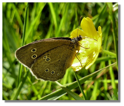 Butterfly numbers seem to get smaller and smaller as the years go by so it was a pleasure to find some Ringlet butterflies at Drumpellier. There is a large grassland area in the park and these butterflies (and also the Meadow Brown variety) thrive in such an environment. Of course, seeing a butterfly and getting a picture do not necessarily follow one another as the butterflies zip around in the sunshine. Eventually this one stopped long enough to recharge its fuel tanks at a buttercup!