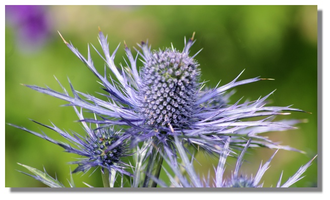 Eryngium is often used by florists to mimic the Scottish thistle, particularly in areas where this symbol of Scotland is not easily available. Common names include Sea-holly and Eryngo, the former typically being applied to coastal species, and the latter to grassland species.