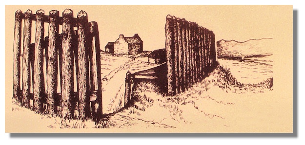 Finlaggan was once the seat of the "Lord of the Isles" and is regarded as the ancestral home of Clan Donald. At various times during the 13th, 14th and 15th centuries there were a number of stone buildings on two of the islands on the loch at Finlaggan. Access then was by boat and for added protection, there was a wooden palisade surrounding the buildings. The picture here is a drawing displayed by the Finlaggan Trust to illustrate what it may have looked like.