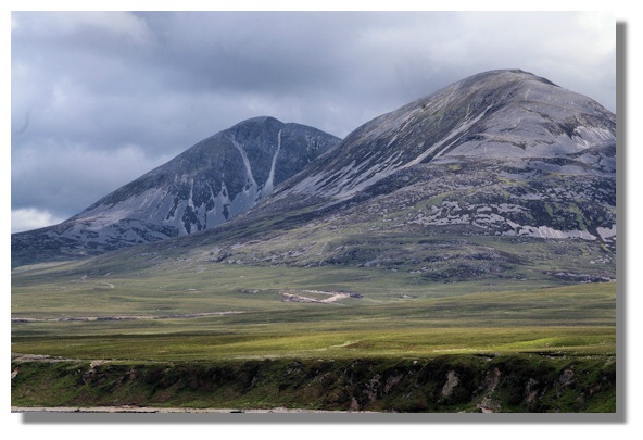 The Paps of Jura are visible on the horizon from many parts of Islay. This view is from Port Askaig across the Sound of Islay; there are three steep-sided conical mountains on Jura - the tallest of which is Beinn an Òir (Gaelic for mountain of gold) standing at 2,575 feet (785 m). It is thus a "Corbett" (a Scottish term for hills between 2500-3000 feet). There is a ferry from Port Askaig on Islay which takes pedestrians, cars and trucks the short distance across the water to Jura.