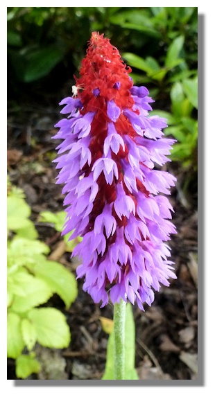 Surprisingly, this flower is a primrose, known by the name Primula Vialii. The upright stems have a rocket-shaped spike of flowers in a shocking combination of mauve-pink and scarlet red, appearing in summer. It was found by the French missionary botanist Père Delavay.
