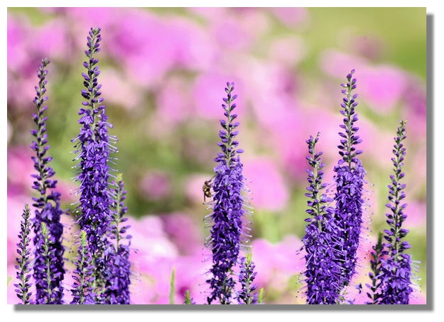 There are about 500 species of Veronica and common names include speedwell, bird's eye, and gypsyweed. The variety here is Veronica longifolia, easy to recognise with its long, thin spires of lavender coloured flowers.