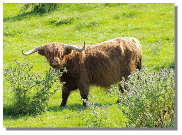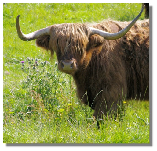 That shaggy hair over its eyes and docile expression have endeared the Highland cow to the non-farming public and has made it popular in places like Pollok Country Park in Glasgow and Scone Palace in Perthshire. Being so photogenic its picture is usually to be found in most collections of tourist postcards in Scotland!