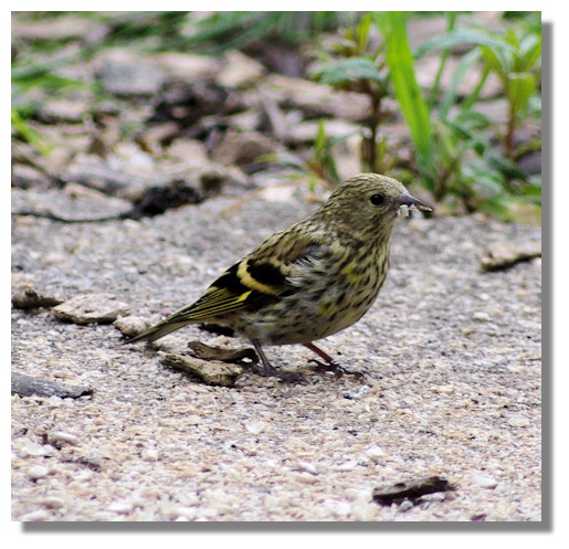 The Royal Society for the Protection of Birds (RSPB) Reserve at Vane Farm on the edge of Loch Leven, near the town of Kinross, is one of their flagship locations in Scotland. The visitor centre has an observation area within the café high above the loch with telescopes available for watching birds from the warmth and comfort of the main building. There are also three smaller hides nearer the loch to allow visitors to get closer to the birds. But I've often found that an area beside the visitor centre which has well stocked bird feeders is often the best location to get pictures - such as this Siskin down on the ground sweeping up the grain that has fallen from the feeders above.
