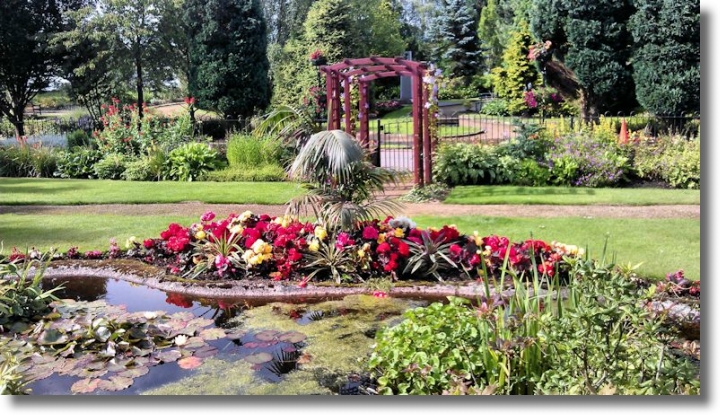 Many of the photographs of flowers in Drumpellier Country Park which have appeared in this Photo Diary Section have come from plants in this small garden with its tiny pond and extensive flower beds. The houses behind are, I think, occupied by staff who work for the local county council and live "on the job". No wonder the garden is kept looking immaculate!