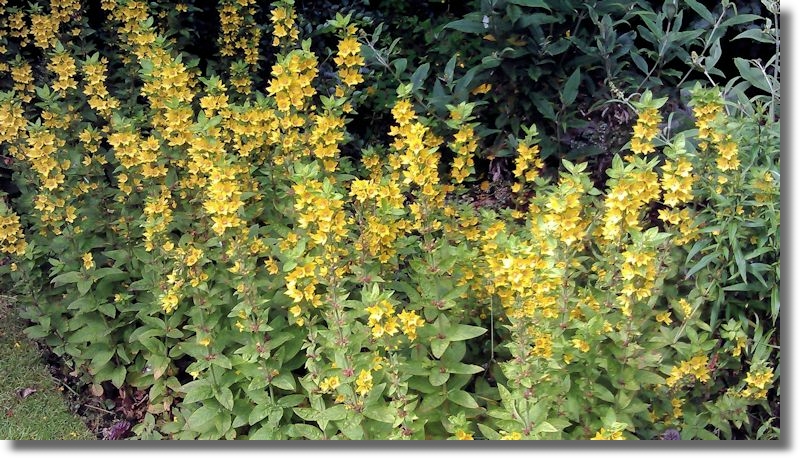 Another flower that not only blooms reliably each year but readily spreads over a larger area is this Lysimachia. I have to keep cutting is back and I get the feeling that Lysimachia would take over the whole garden, given the opportunity. Several species within the Lysimachia family are commonly called loosestrife. It is named in honour of Lysimachus, a king of ancient Sicily, who is said to have calmed a mad ox by feeding it a member of the this plant family.