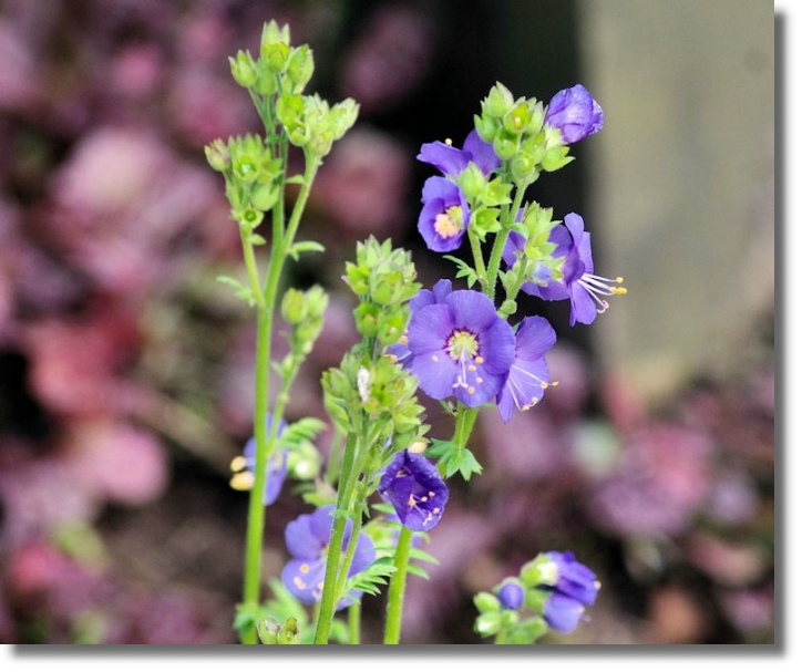 Polemonium, commonly called Jacob's ladder, is a family of about 30 species of flowering plants in the family Polemoniaceae. They are native to cool temperate to arctic regions of the Northern Hemisphere and also in the southern Andes in South America. Many of the species grow at high altitudes in mountains. They are perennial plants, growing 10–120 cm (4 inches to 48 inches) tall with bright green leaves divided into lance-shaped leaflets, and produce blue (rarely white or pink) flowers in the spring and summer. Like a number of the flowers in the RSPB Loch Leven reserve, they were found growing in a cultivated garden beside the visitor centre. This has recently undergone a major refurbishment and in particular the café (which incorporates an observation window with telescopes for visitors to use to view the birds out on the water) has had a major make-over. That's especially welcome if you have been outside on a cold, wet day trying to catch sight of some of the more elusive birds!