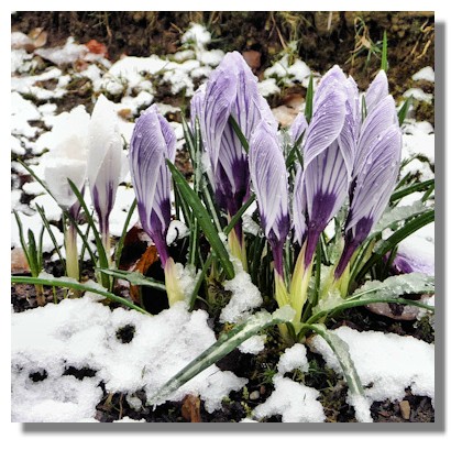 There were a number of cold spells in March and even in central Scotland there were some light falls of snow. These crocus (and the adjacent snowdrops) managed to cope with the bitterly cold weather. Of course, they kept their petals tightly closed, even when the sun eventually came out.