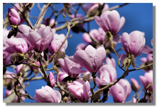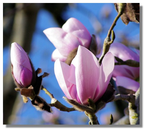 I was hopeful that despite the hard winter and some recent frost, the tall magnolia trees would be in blossom and I wasn't disappointed. In some earlier years there have been signs of frost damage on the flowers but surprisingly this year there was very little in the way of browning on the petals.