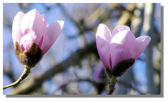 This is the typical cup-shaped flowers of magnolia although there are many different varieties - some flowering later in the year.