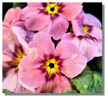 I had bought some primroses to provide some extra colour in my garden but had to wait till the rain stopped before planting them. But that just meant it was easier to take a photograph of them with raindrops adding to their attractiveness.