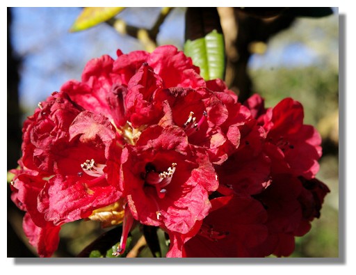 Although there are early flowering rhododendrons, the peak flowering season is still to come in Scotland. But either because of climate (Culzean is in the south west of Scotland on the Ayrshire coast, so gets some benefit from the warmer waters of the Gulf Stream) or the selection of varieties, Culzean Country Park has a great display of rhododendrons in flower even in March. In the earlier days of digital cameras, a red flower like this would not have been recorded very well. These days, even in woodlands without a lot of light, the camera picks up the reds perfectly.