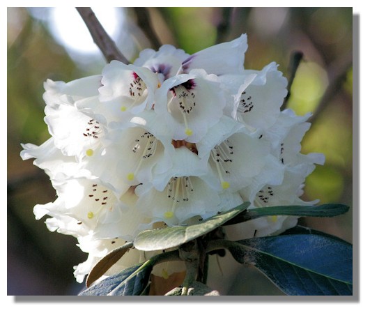With its buds still unfolding and its unusual colours, this rhododendron doesn't look typical. Unfortunately, the woodland setting and large bushes doesn't lend itself to having labels with the names of the varieties on them. Perhaps after the visitor centre opens again on 1st April, I can take the pictures to the park rangers and see if they can identify them. They are sure to have records of all the ones planted in recent years.