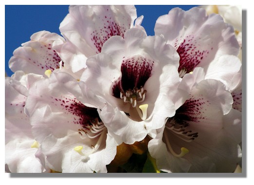 Many of the rhododendrons pictured here are located in woodland areas which many visitors never seem to find, which is a great pity as there are many really lovely rhododendrons there at this time of year. The plants have only been there for a few years and have not reached the giant size that some rhododendrons grow to. But that just means that many of the flowers are within easy reach of the camera.