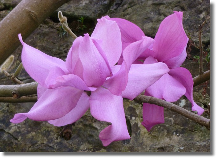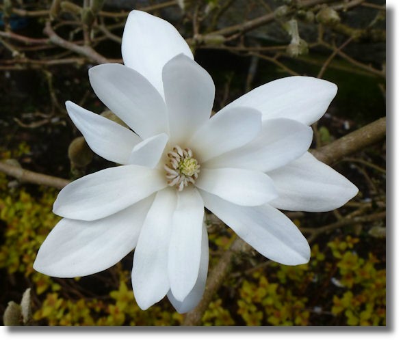 Except where parks or gardens put names on their magnolia trees I am never sure what specific variety they are - except this one. The shape of the "Magnolia Stellata" (the star magnolia) immediately brings stars to mind. This slow-growing shrub or small tree is native to Japan.