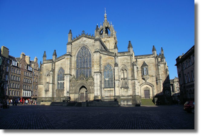 The High Kirk of St Giles in Edinburgh is named after the patron saint of lepers, having been founded by Lazarite monks who were granted royal patronage by King David I (who reigned from 1124-1153) to establish a church for the people of Edinburgh. St Giles also became the patron saint of Edinburgh. Little remains of this first church apart from some fragments built into the wall. The first church was set on fire by the invading English troops of King Richard II in 1385. Following this, the church on Edinburgh's High Street (part of the city's aptly named Royal Mile which runs from Edinburgh Castle to the royal Palace of Holyrood House )developed in a haphazard fashion as wealthy townspeople built on additional chapels attached to the main building. When John Knox came back to Scotland in 1559 he became minister at St Giles and preached there until his death in 1572. Knox was a leading figure in the Reformation of the church. Between 1829 and 1833 the building was "modernised" with a new skin of masonry (apart from the "crown" tower which was built around 1500) which explains the proliferation of stone carvings on the building's exterior.