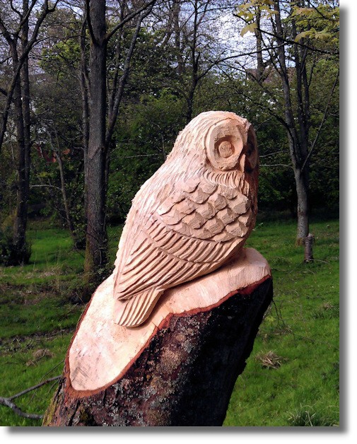 While the seat used a large fallen tree, this owl has been carved out of a much smaller piece of wood. I don't know what tools were used to create this work of art but the result is very realistic!