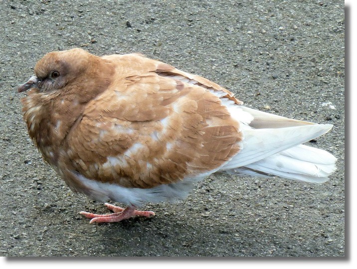 Feral pigeons are numerous and commonplace in our towns and cities and I'm used to them coming in all sorts of colours, though they are mainly blue and gray. So when I saw this one with brown feathers at Bingham's Pond I just had to take its picture!