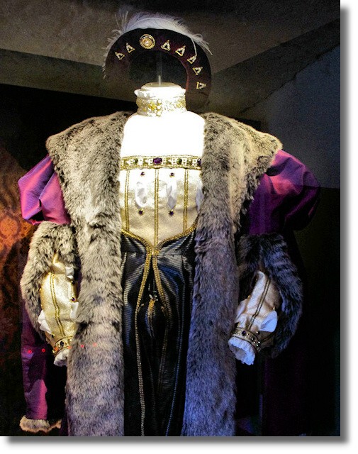 In keeping with his impressive apartments, King James V also had expensive clothing, including a gown of crimson satin from Venice, lined with the finest fur, a jerkin or sleeveless coat, made with black satin and edged with gold braid, a padded jacket, called a doublet, stitched with jewels and gold embroidery, an embroidered shirt, poking through the slashes on his doublet and a floppy velvet bonnet with a beautiful gold and pearl brooch. Quite a dandy!