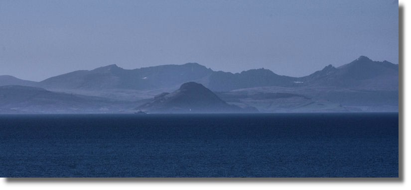 The southern end of the island of Arran in the Firth of Clyde is about 15 miles from Culzean Castle. I often try to take a photo of this view but more often than not there is a haze obscuring the silhouette of the island. This one, in the late afternoon on sunny day turned out not too bad after a bit of manipulation in the photographic software - a ship sailing past is even visible in the distance.