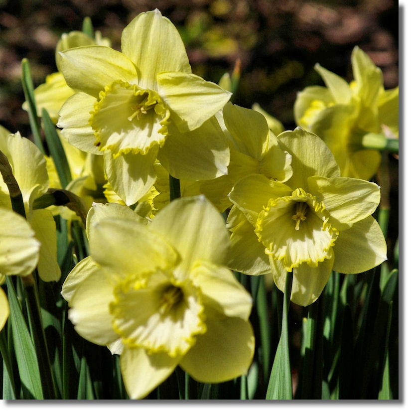 I've visited the gardens many times over the years, but hadn't realised until now just how many different varieties of daffodils they grow there. Thankfully, many of the flowers have identification labels beside them so that visitors can follow up on any that they particularly like and obtain them from bulb growers. The ones in the graphic above with a slight green tinge in their colour were named "St Patrick's Day".