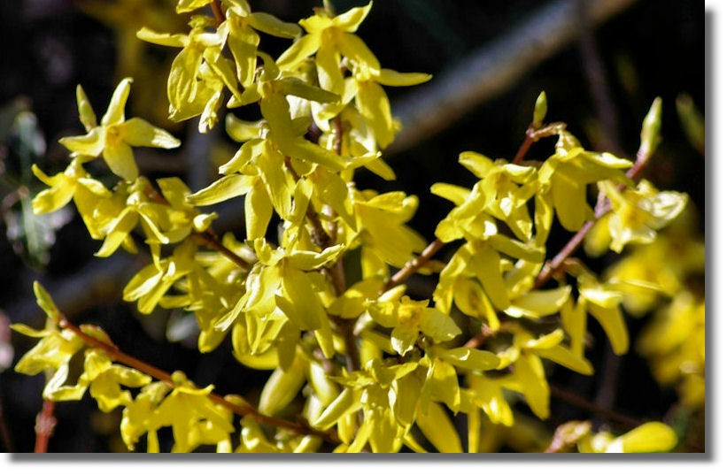 Forsythia is named after William Forsyth (1737-1804) from Old Meldrum, Aberdeenshire, who became Superintendent of the Royal Gardens of St James and Kensington in London. As with a number of spring flowers, the blooms appear on the branches of Forsythia before the arrival of the leaves. William Forsyth is one of a collection of Scottish plant hunters and botanists who are featured in the Scottish Plant Hunters Garden in Pitlochry, Perthshire.
