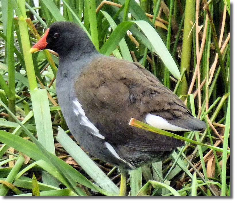 Moorhens are smaller than coots and are far less confident about approaching humans, even when there is food on offer. But this one had built a nest in the same general area as the coot and so was within good range for photography. In fact, there are two Great Crested Grebe nests, a Swan and two Coot nests as well as the Moorhen all within a few hundred yards of one another, so hopefully it's going to be a busy summer for photographing all the young birds once they have hatched.