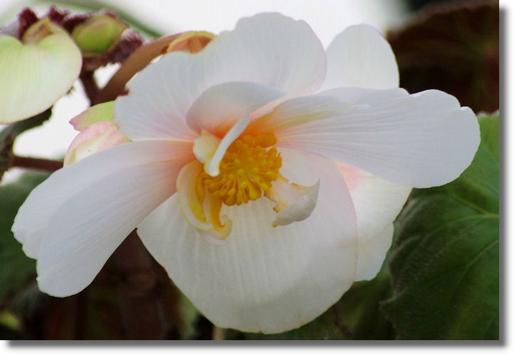 There is a small heated greenhouse in Greenbank Gardens which provides space for the gardeners to grow cuttings and seeds for the garden. But it is also used for an attractive display of tender plants such as this delicate begonia.