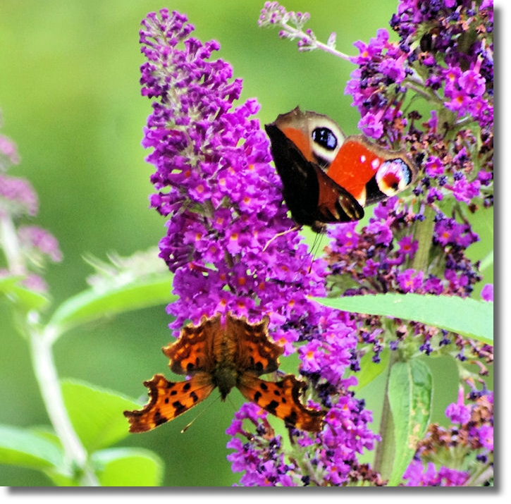 Butterflies have been hard to find this year, largely due to the poor, wet, summer. So it was a delight to find a good number of Peacock butterflies as well as three examples of my favourite - the Comma butterfly. Both types can be seen in this picture feeding on the flower of a buddleja bush in the appropriately named butterfly garden at Scone.