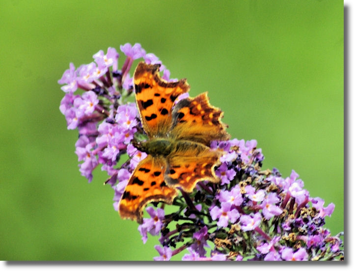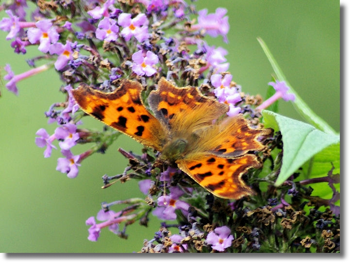The Comma is a favourite of mine partly because I photographed one as far back as 2004 at a time when many butterfly books were asserting that it was extinct in Scotland - though still to be seen further south in England. Initially there was a suggestion that an enthusiast might have incubated some Comma eggs and released them once they had hatched. But as numbers sighted have increased in recent years it appears that the Comma has become established in Scotland and is breeding and hibernating over winter, mainly in the east of Scotland. The butterfly garden at Scone has become a fairly reliable place to see them, particularly at this time of year