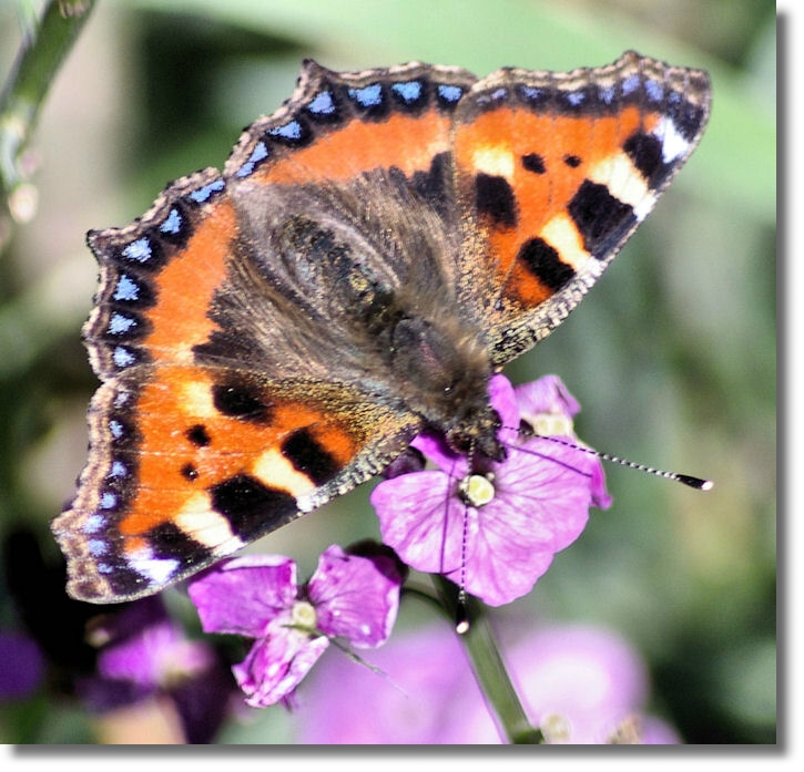 The Small Tortoiseshell butterfly also hibernates during the winter and so is usually one of the first butterflies to be seen in the spring.