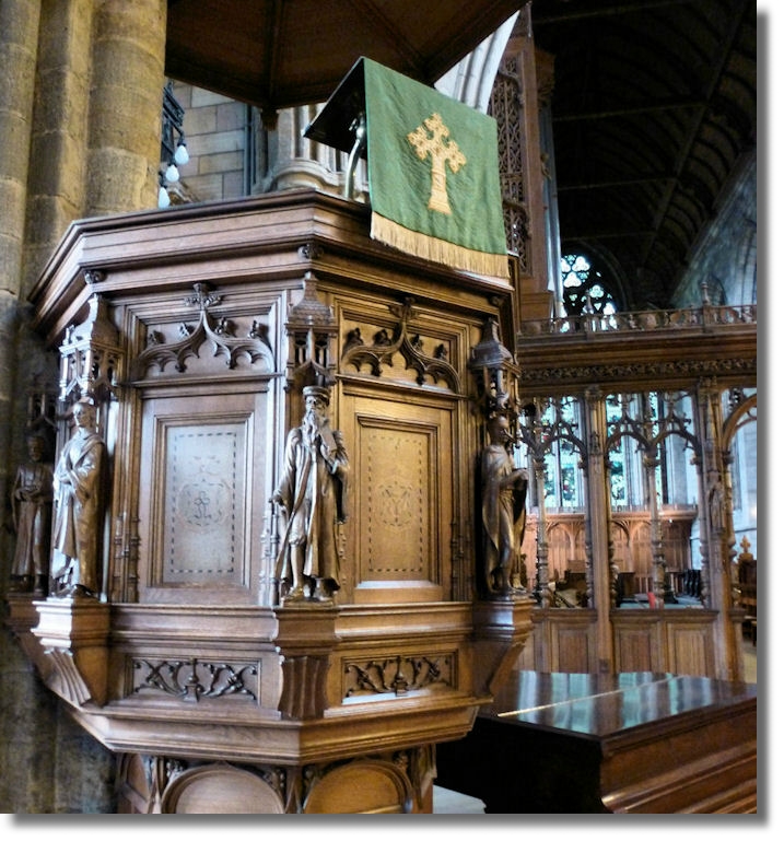 The impressive pulpit dates from the 19th century restoration and has seven finely carved figures reflecting the history of the cathedral. St Blane is of course featured along with King David I who founded the bishopric of Dunblane, Clement, Bishop of Dunblane from 1233-1258 who built the original stone building and John Knox, the main inspiration of the Reformation in Scotland.