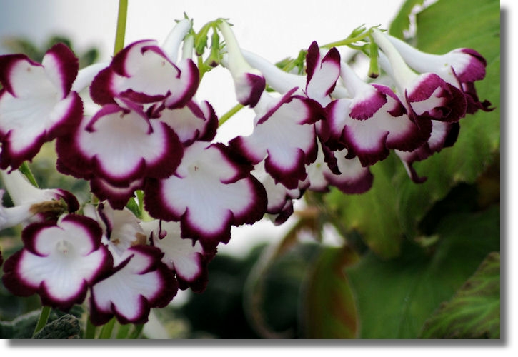 Another of the plants found in that small glasshouse at Greenbank was Streptocarpus. They had a number of different varieties on show, including this one - Streptocarpus Roulette Cherry. Streptocarpus flowers are almost orchid-like in appearance, and hover or arch over the plant leaves. It is native to parts of Africa and Madagascar. Its name is derived from Greek via Latin, where strepto = twisted, carpus = fruit, due to the spiral shape of its seed pod. It has a common name of Cape Primrose, referring to the source of several species in South Africa and their superficial resemblance to the genus Primula.